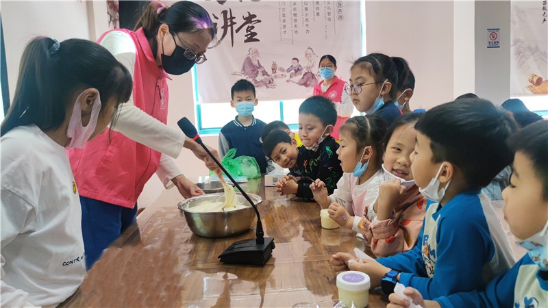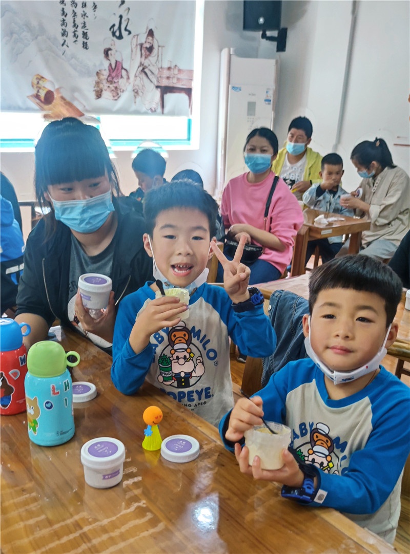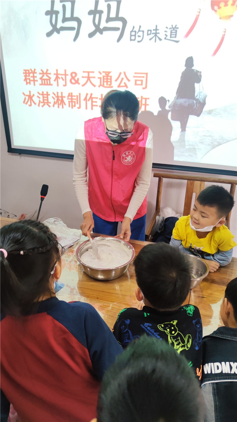 提及冰淇淋,現(xiàn)場(chǎng)的小朋友一個(gè)個(gè)興奮得歡呼雀躍。商場(chǎng)里出售的冰淇淋中多含有較多的添加劑,如何給孩子制作一款無(wú)添加劑的冰淇淋成了這堂親子互動(dòng)課的目的。群益村美食老師現(xiàn)場(chǎng)講解打發(fā)雞蛋及雞蛋牛奶混合液的過(guò)程,演示打發(fā)淡奶油、攪拌混合,加入果醬等改變口味的方法和分裝小瓶等步驟。期間大家認(rèn)真聽講解,小朋友們眼睛牢牢地盯著講臺(tái),仔細(xì)觀察每一個(gè)步驟,還時(shí)不時(shí)地向美食老師發(fā)問(wèn),興致高漲。孩子們一邊品嘗著冰淇淋,一邊在自己的冰淇淋罐盒上貼上自己所愛口味的標(biāo)簽后讓美食老師裝滿剛做的冰淇淋,跑前跑后忙得不亦樂(lè)乎!