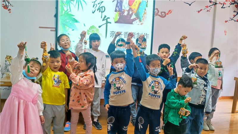 悠悠香囊味,濃濃端午情。誰(shuí)說(shuō)針線是女生的專利,男孩子照樣幫媽媽穿針引線,不一會(huì)兒,花色不同、圖案精美的香囊雛形就完成了,親子們把中藥包放入縫制好的香囊中,串上玲瓏剔透的珠子,掛上色彩繽紛的流蘇,一個(gè)個(gè)飽滿芳香的中藥香囊就制作完成了。端午節(jié)習(xí)俗,傳遞的是文化,傳遞的是感情。一個(gè)簡(jiǎn)單的香囊不僅增加傳統(tǒng)節(jié)日的氛圍,更有利于親子增進(jìn)情感,同時(shí)培養(yǎng)了孩子們的動(dòng)手能力和創(chuàng)造力,還進(jìn)一步了解了中華傳統(tǒng)文化。在小朋友心中埋下了愛國(guó)主義的種子,厚植愛國(guó)主義情懷,引導(dǎo)他們成長(zhǎng)為新時(shí)代“四有青年”。